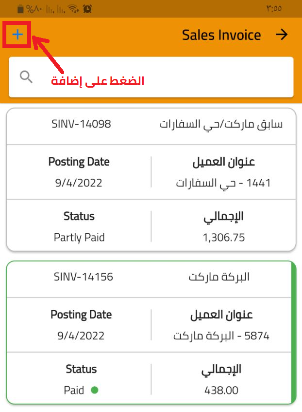 2 - الدخول على فاتورة المبيعات (Sales Invoice) من قائمة المبيعات