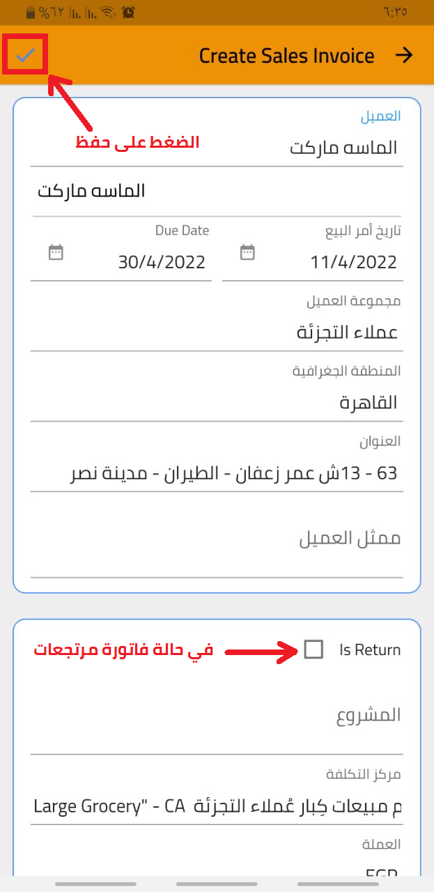 6 - تم إنشاء فاتورة المبيعات بنجاح